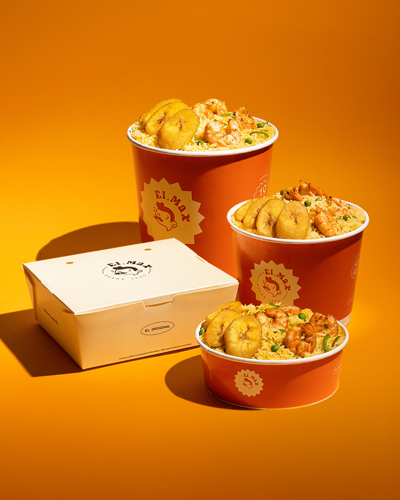 Camarones, arroz, arvejas, pimiento verde , cebolla salteada, maduro y salsas